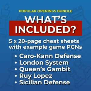 Our chess cheat sheets streamline the process, condensing all the information you need into easy-to-follow guides. With example game PGN files thrown in for free, what’s not to love?